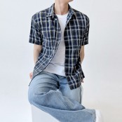 내추럴 남자 오버핏 반팔 셔츠 남성 반팔 체크셔츠 남방