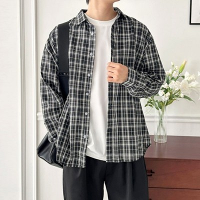 데일리 남자 체크 남방 오버핏 남성 긴팔 체크 셔츠